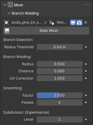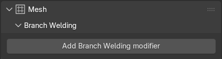 Clicking the Add Branch Welding Modifier button in the Mesh->Branch Welding Panel add a Branch Welding modifier to the active tree object: